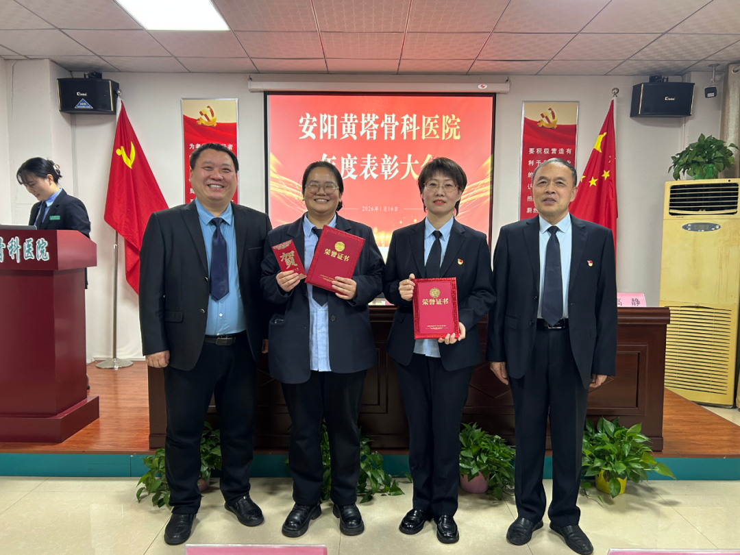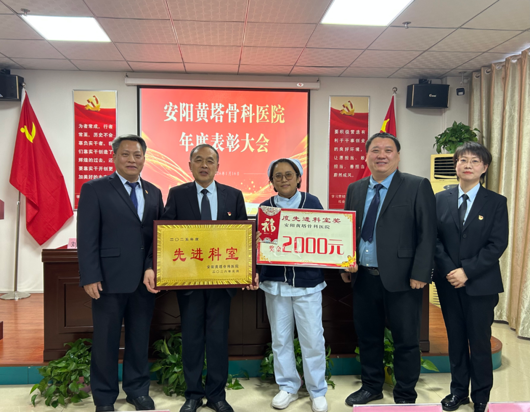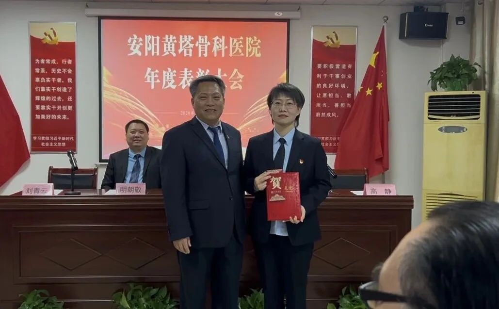 安阳黄塔骨科医院党支部书记明朝庆宣读表彰文件,对2025年度涌现出的优 秀集体与个人进行了表彰: