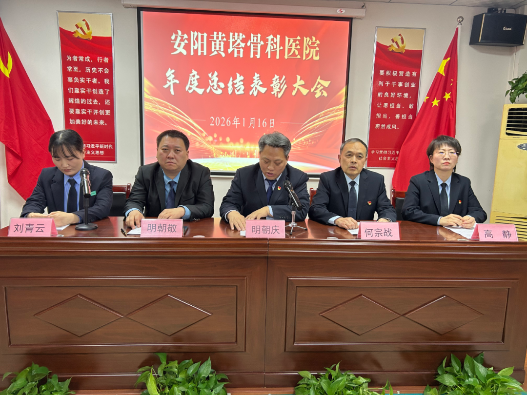 1月16日下午,安阳黄塔骨科医院年度工作会议在五楼会议室隆重召开。全院职工齐聚一堂,共同回顾2025年的奋斗历程,表彰笃行实干的优 秀榜样,展望2026年的发展蓝图。